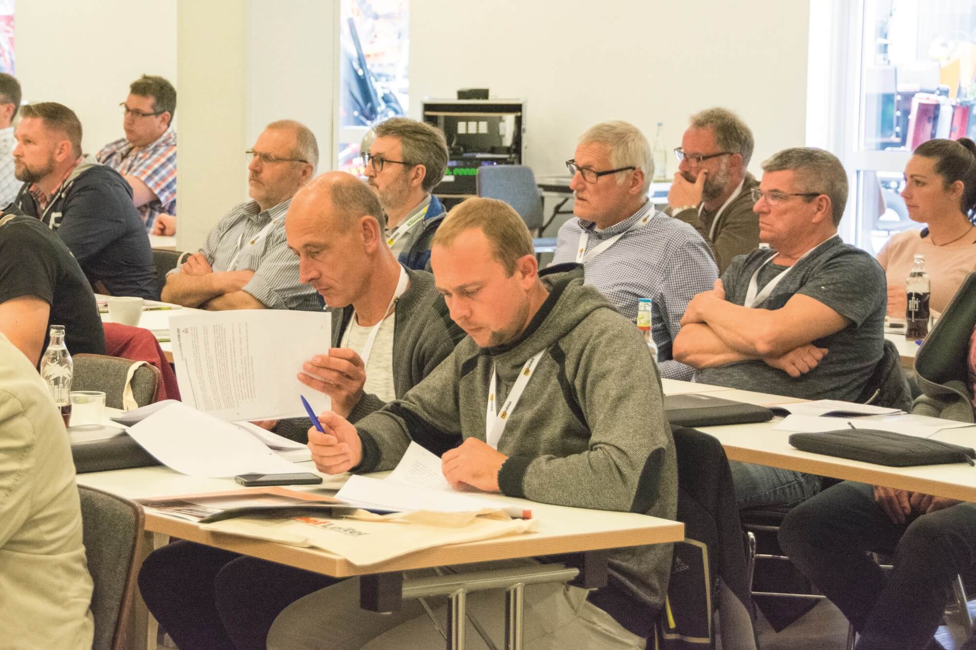 Bis 8:45 Uhr fanden sich ca. 120 Teilnehmer ein, um den Tag mit einem Fachvortrag von Dipl.-Ing. Markus Gieske und Dipl.-Ing. Tobias Wilms zu beginnen. Die beiden berichteten über aktuelle Entwicklungen in kommunalen Bauhöfen. Dabei stießen insbesondere die Themen der Bauhofzusammenlegungen, Digitalisierung im Grünflächenmanagement und Unterhalt von Friedhofsflächen auf großes Interesse bei den Teilnehmern. Auch für uns hielt der Vortrag noch einige spannende Details bereit!