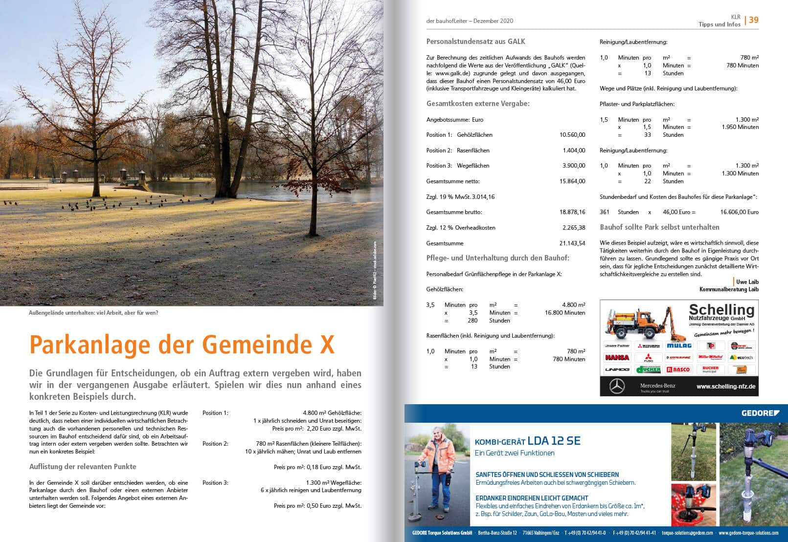 In Teil 1 der Serie zu Kosten- und Leistungsrechnung (KLR) wurde deutlich, dass neben einer individuellen wirtschaftlichen Betrachtung auch die vorhandenen personellen und technischen Ressourcen im Bauhof entscheidend dafür sind, ob ein Arbeitsauftrag intern oder extern vergeben werden sollte. Betrachten wir nun ein konkretes Beispiel: