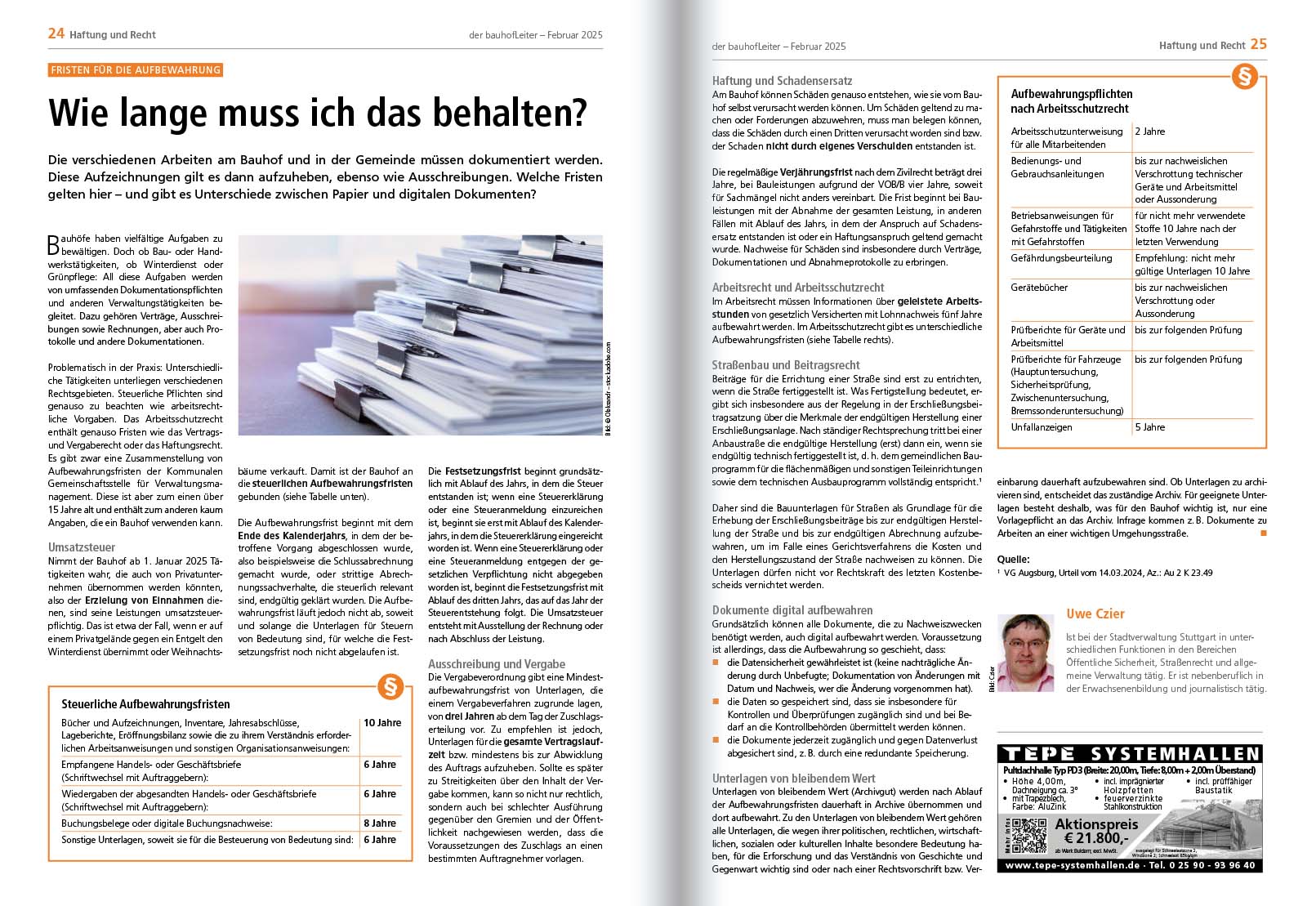 Die verschiedenen Arbeiten am Bauhof und in der Gemeinde müssen dokumentiert werden. Diese Aufzeichnungen gilt es dann aufzuheben, ebenso wie Ausschreibungen. Welche Fristen gelten hier – und gibt es Unterschiede zwischen Papier und digitalen Dokumenten?